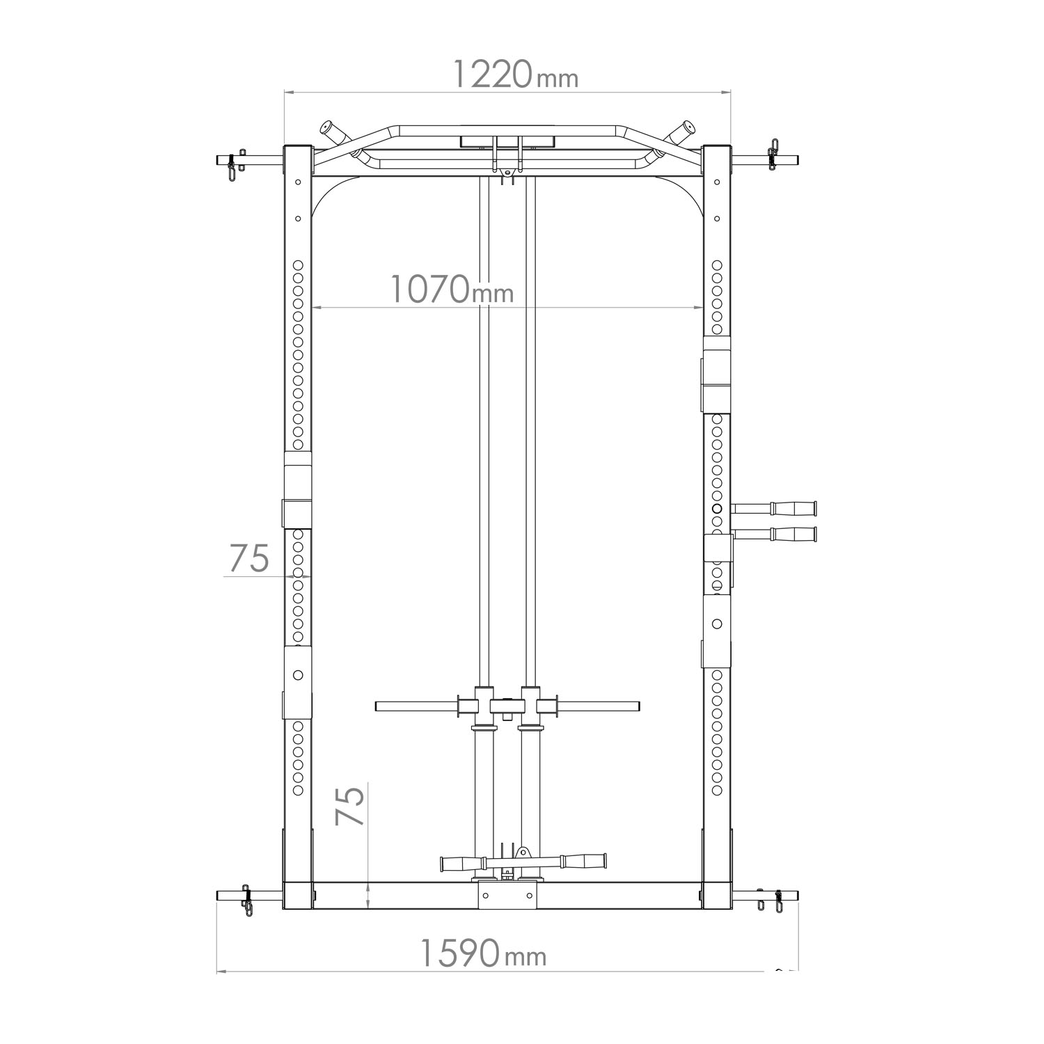 Het rek beschikt over een geïntegreerde multifunctionele optrekstang die voorzien is van slipvrije grepen voor optimale comfort tijdens het optrekken. Om bijvoorbeeld weerstandsbanden / power bands op te kunnen hangen is de power rack voorzien van 8 verchroomde pinnen zodat je ook dynamische trainingen kunt uitvoeren zonder dat je elders in je trainingsruimte op zoek moet gaan naar spullen.