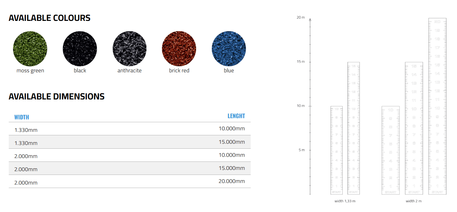 Alle sprinttracks zijn ontworpen om bestand te zijn tegen hoge impact en zwaar gebruik. Elke vezel is niet-richtinggebonden, wat betekent dat het oppervlak niet plat of vervormd raakt door impact of zware belasting.
