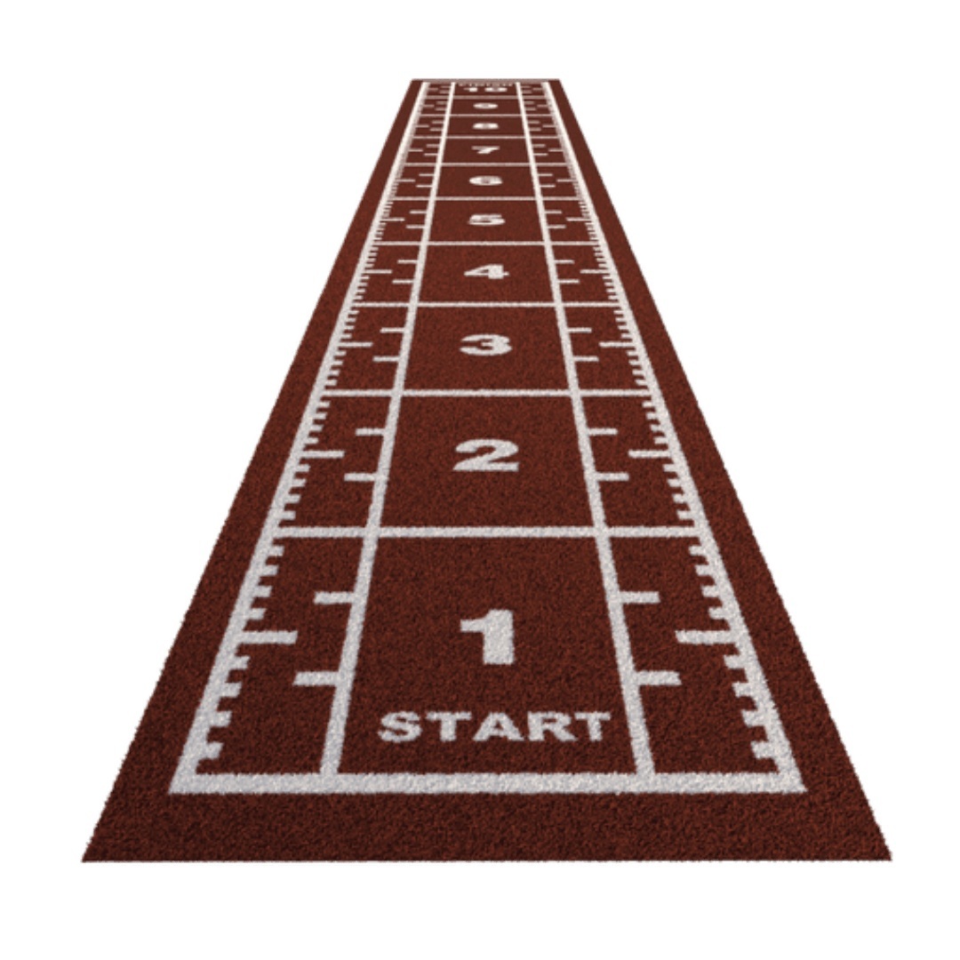 De sprinttrack Premium is voorzien van machinaal getufte witte vezelmarkeringen (voor ultieme duurzaamheid en kleurechtheid), inclusief een speedladder, speedtracks, jumplijnen, nummers en een startpunt voor maximale veelzijdigheid in gebruik.