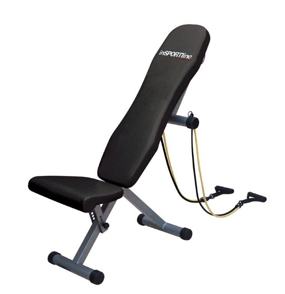 Lichtgewicht en duurzame bank Insportline werkt op principe van rubbere drijfstangen (lijnen) en een hefboom systeem. Er is geen behoefte aan andere gewichten of halters. Op basis van de instellingen van de krachtbank kunt u uw borstspieren, bicepses en buikspieren trainen.