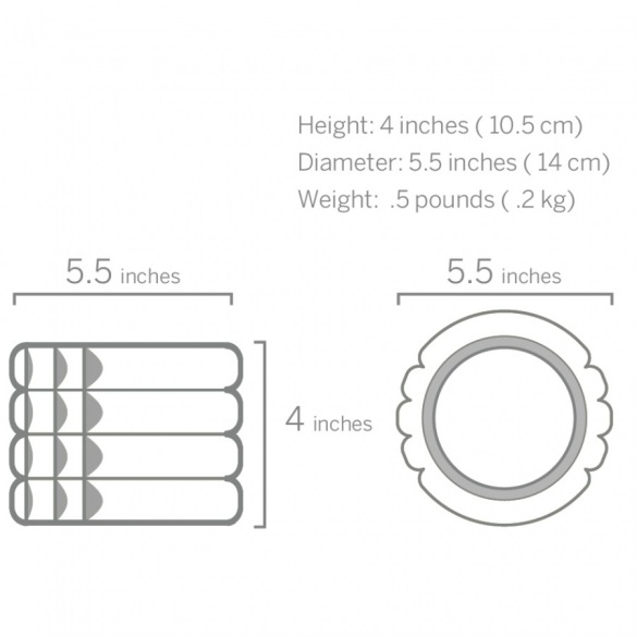 Deze foamroller is een kleine uitvoering en heeft een lengte van 10,5cm en een diameter van 14cm. Ideaal om mee te nemen.