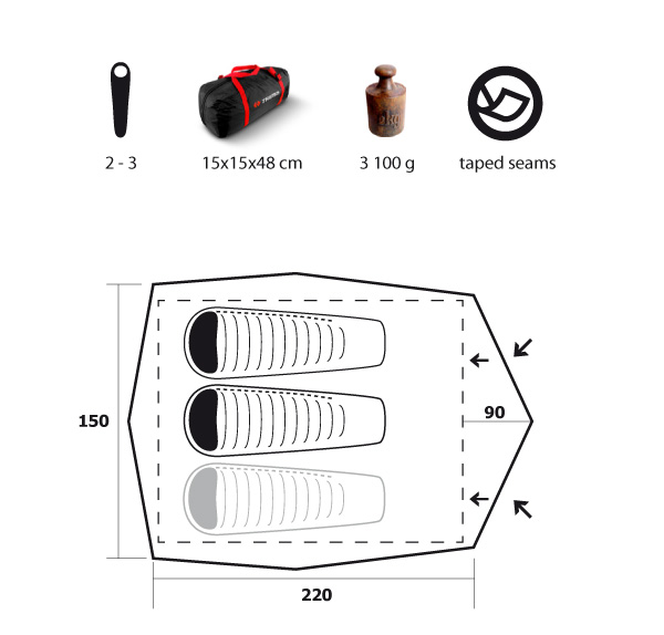 Een tent voor 3 personen. Trimm COMET tent is uitgerust met een DuraWrap™ constructie en hij is extra lang voor meer comfort. De ruime ingang biedt genoeg ruimte om spullen en uitrusting neer te zetten. Deze tent is geliefd vanwege zijn comfort, weinig gewicht en makkelijke opbouw (circa 15 min.!). Als u een natuurliefhebber bent zal u deze tent en zijn voordelen waarderen!