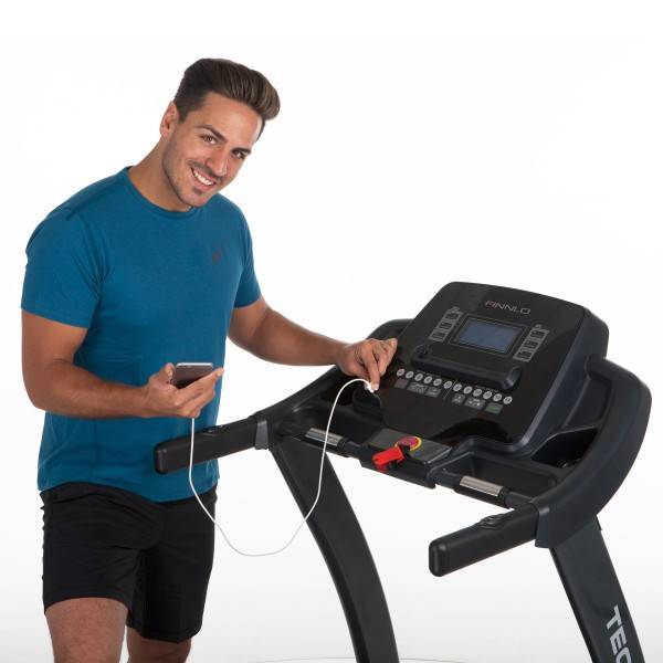 Maak kennis met de lang verwachte nieuwe generatie Finnlo loopbanden met USB aansluiting. De spectaculaire nieuwe vormgeving en 5" display zorgen voor een welkome aanvulling thuis om uw favoriete hardloopschema in uw eigen tijd en ruimte voort te zetten. Train tot 18 km/h en zelfs tot 15% hellingshoek om het maximale uit uw training te halen.
