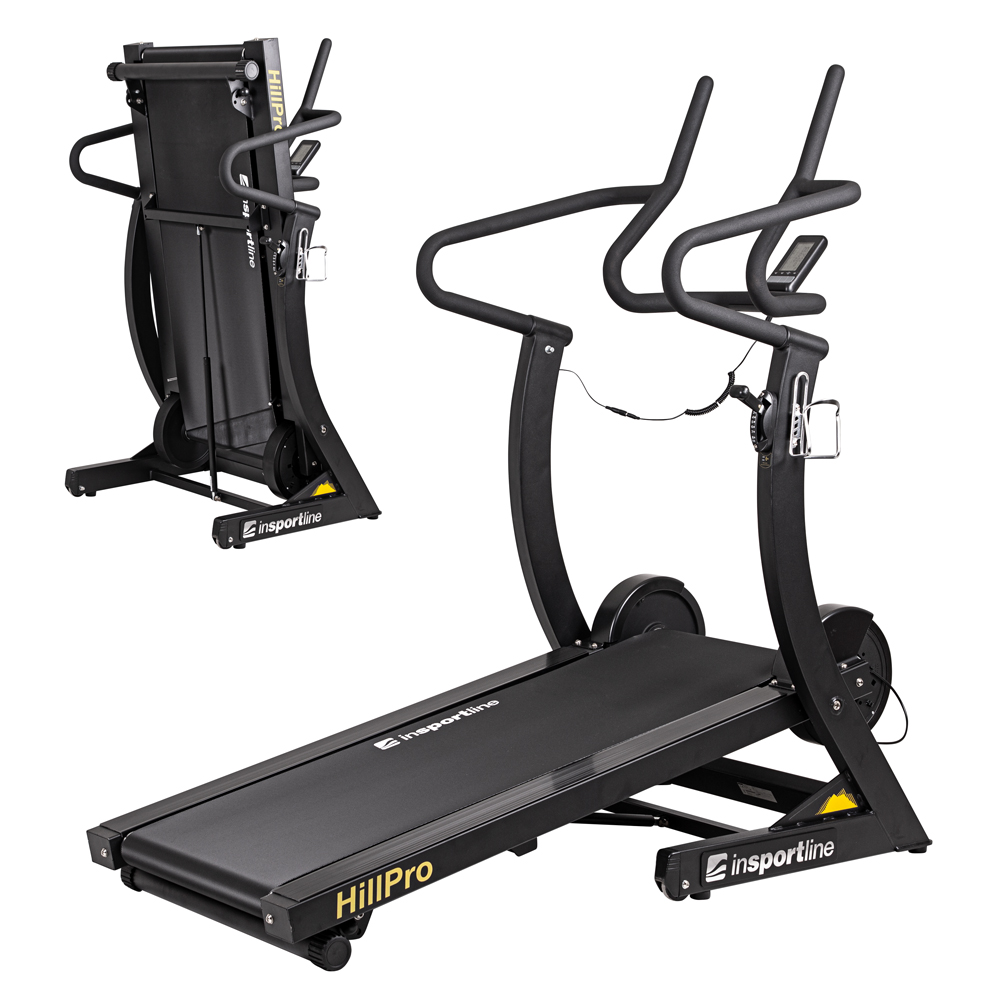 De loopband inSPORTline Hill Pro is een professionele motorless loopband geschikt voor commercieel gebruik. De twee zware (15 kg elk) vliegwielen en stevig frame zorgen voor een soepele en stille werking . Voor aanvang van de oefening de gebruiker kan de helling van de loopband te passen 4 verschillende posities (8 °, 9 °, 11 °, 13 °). De loopband inSPORTline Hill Pro zorgt voor een optimale platform voor fitness training. De motorloze rit kunt u de running / loopsnelheid aan te passen aan uw conditie.