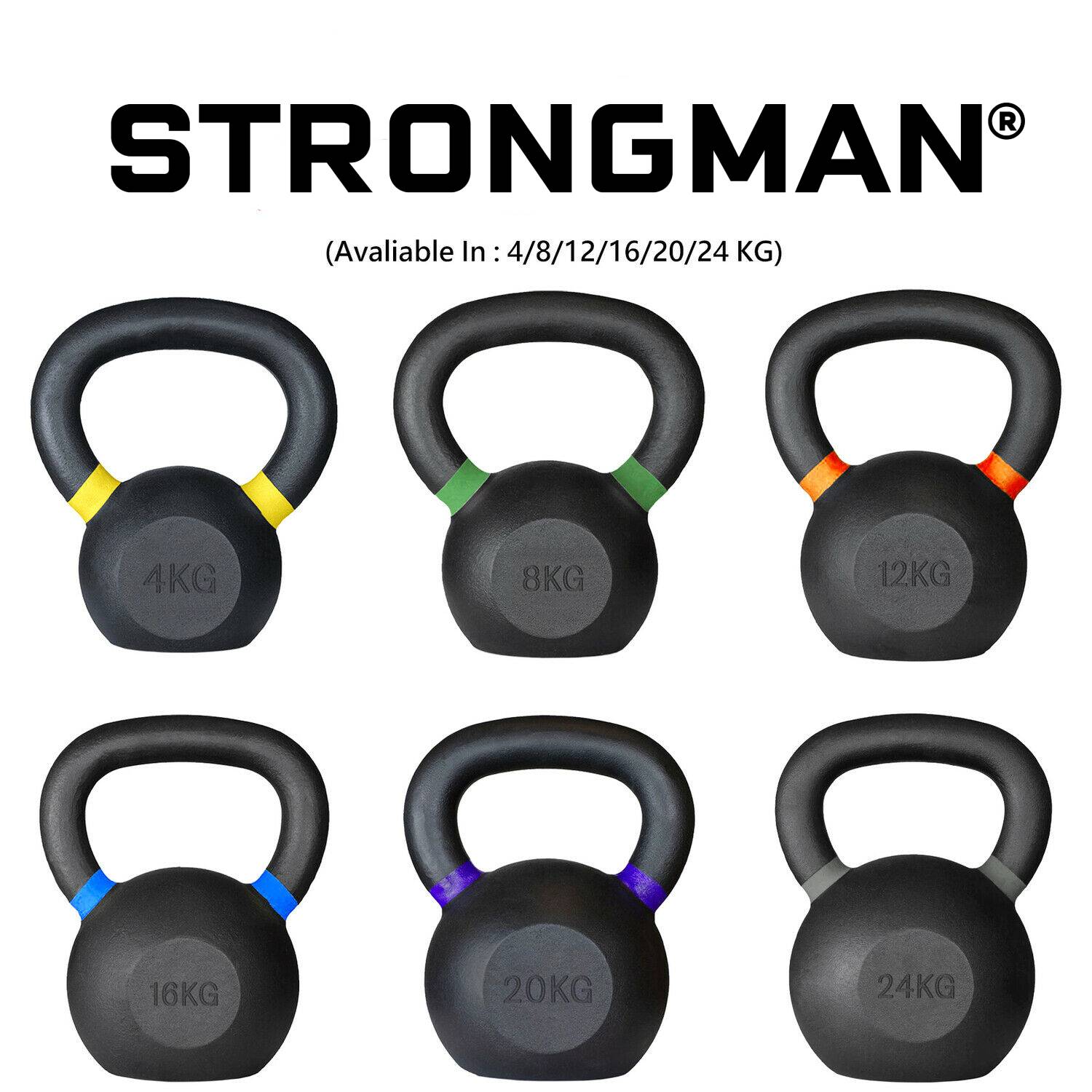 Deze Strongman poeder coating kettlebells zijn de meest populaire kettlebells voor thuis, in de sportschool en in crossfitboxen of bootcamp clubs. Deze gewichten zijn zeer duurzaam en hebben een mooie uitstraling en goede grip. Zelfs na intensief gebruik blijven deze kettlebells er super uitzien door de speciale poedercoating van dit product.