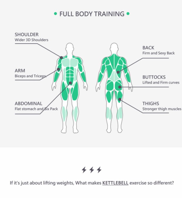 Alle kettlebells hebben en gewichts- en kleurindicatie zodat je gemakkelijk het juiste gewicht te pakken hebt tijdens een intensieve workout.