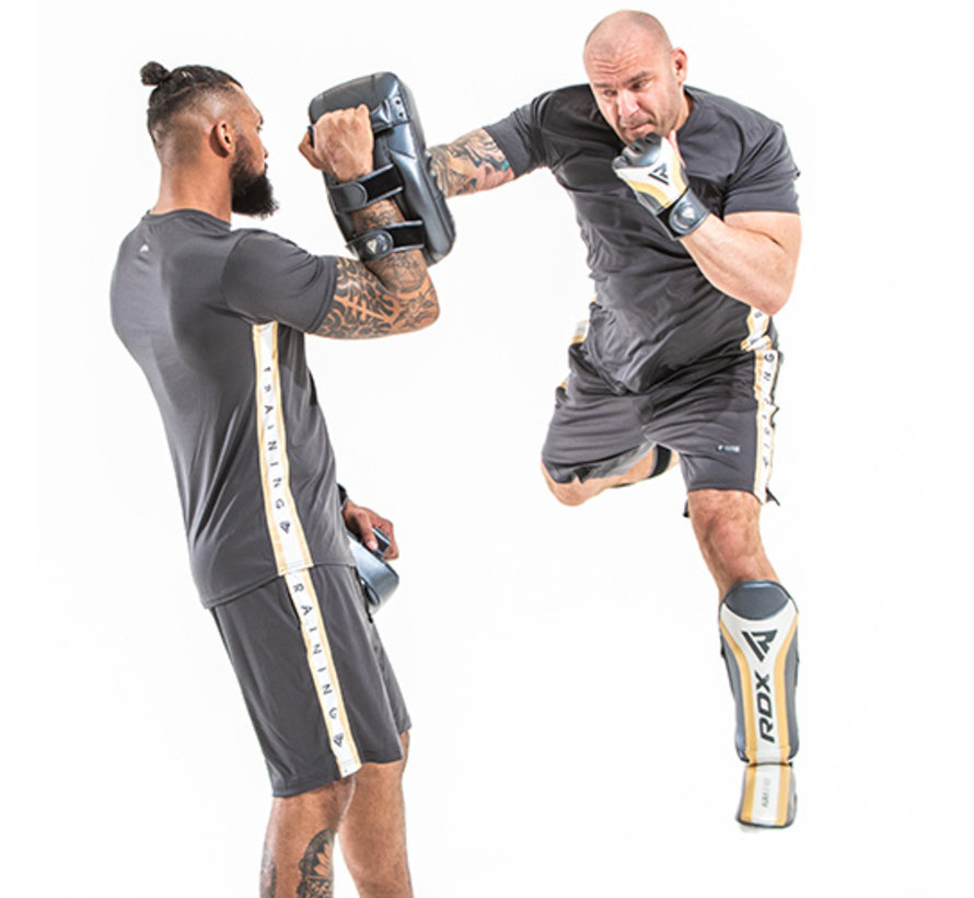 KKalix Skin bewapent de schokabsorberende inhoud van deze onverwoestbare Thaise pads. Sla, trap, knie, elleboog - gooi het aanrecht er naar toe, deze Thaise pads zijn hier om lang te blijven nadat je atleten zich hebben leeggemaakt zonder een deuk om ervoor te laten zien. Het schokabsorberende midden is gelamineerd met een zacht schuim om elke slag aangenaam te begroeten, maar vergis je niet, er is niets zacht aan deze Thaise pads.