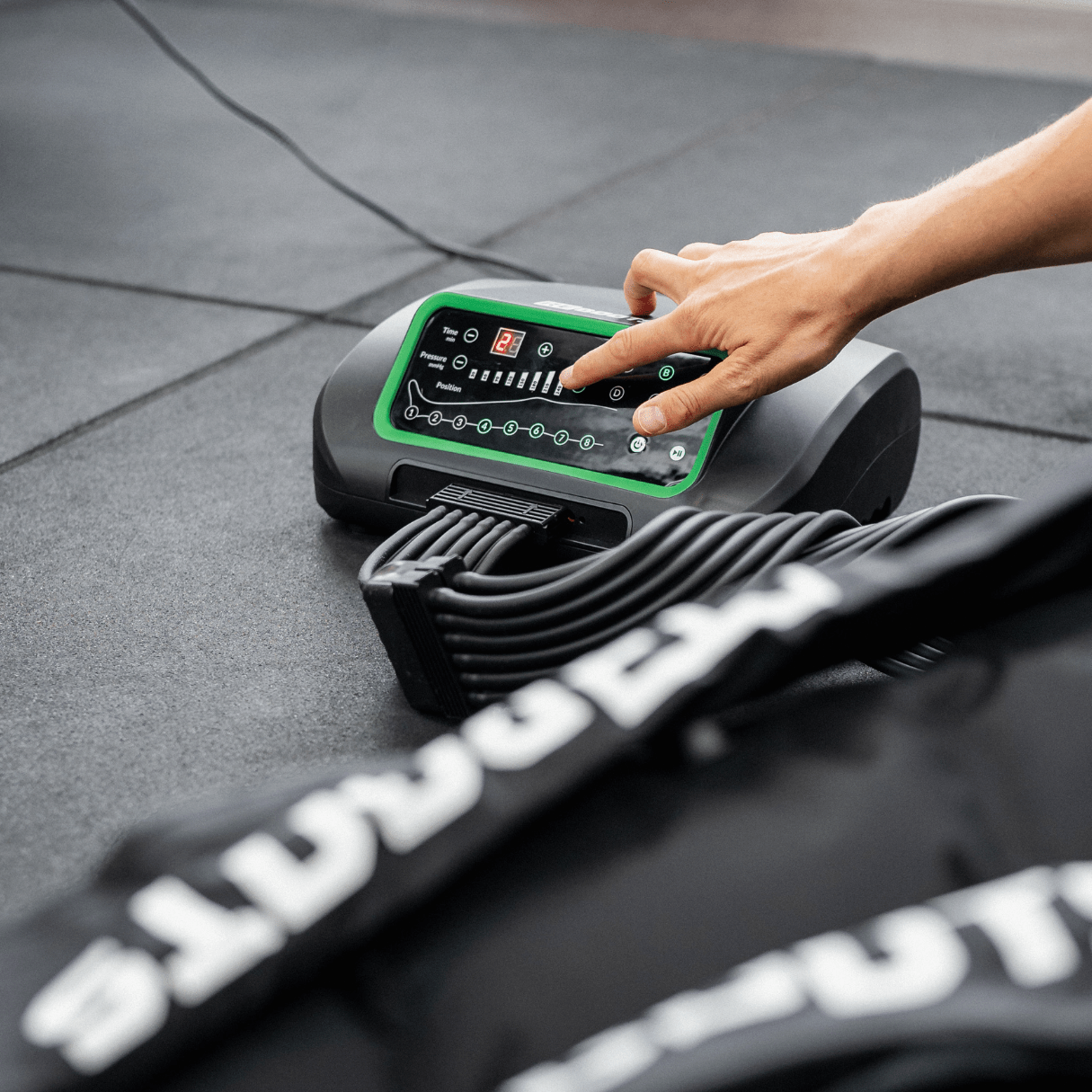 Regel je massage met onze Reboots One: van een lichte verhoging van de bloedcirculatie (40-80 mmHg) tot diepe spierontspanning (tot 240 mmHg). Onze 8 intensiteitsniveaus garanderen jou op maat gemaakte regeneratie die je nergens anders zult vinden.