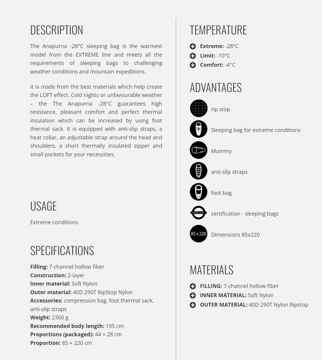 De Anapurna -28°C slaapzak is het warmste model uit de EXTREME lijn en voldoet aan alle eisen van slaapzakken voor uitdagende weersomstandigheden en bergexpedities.