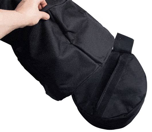 De binnenste sandbag kun je afsluiten met klittenband en de buitenste zak kun je afsluiten met een waterdichte ritsluiting. Dit maakt het ook praktisch zeer prettig in gebruik.
