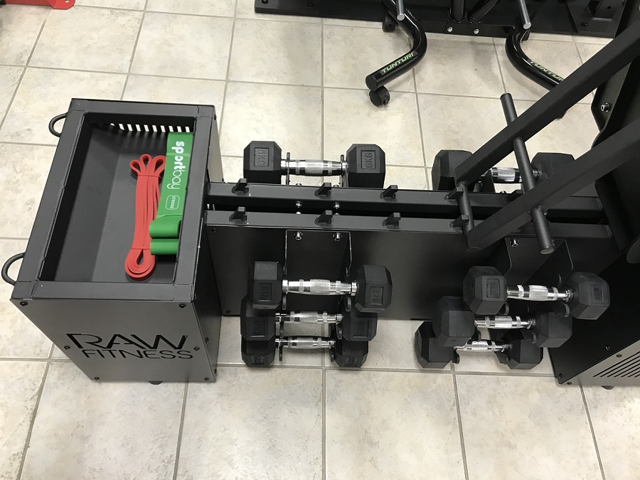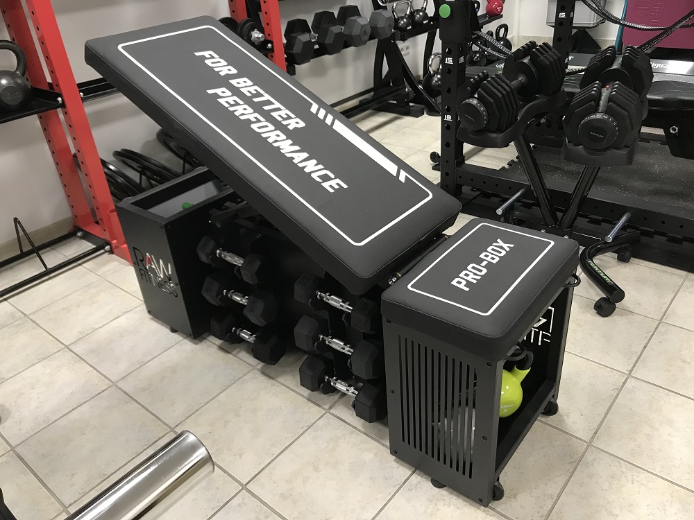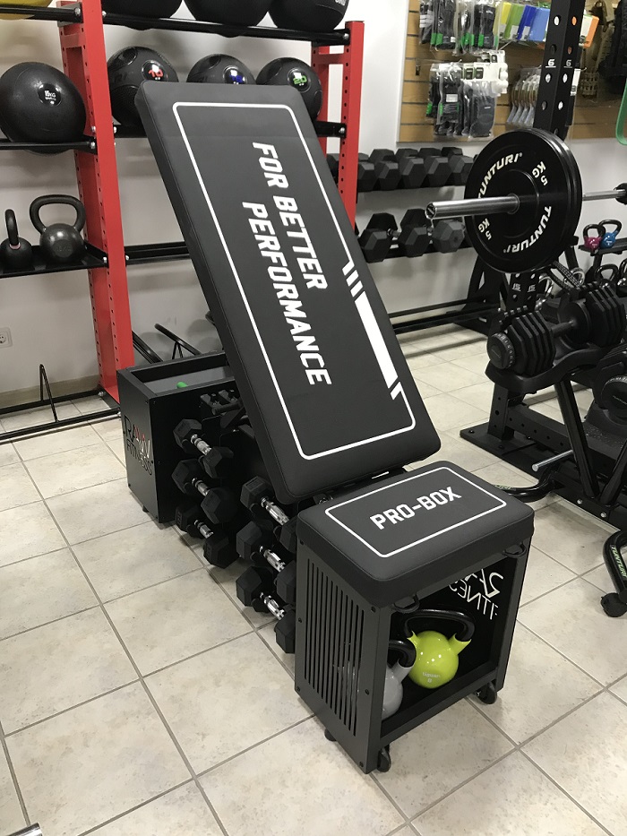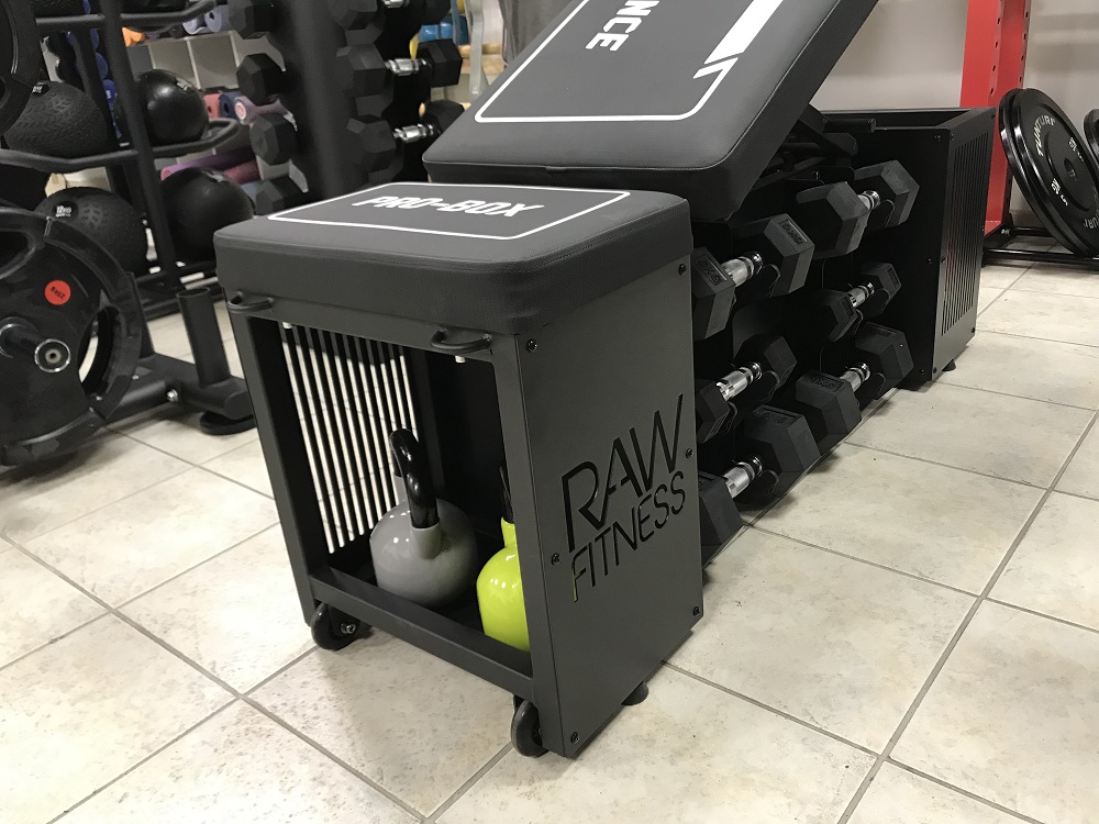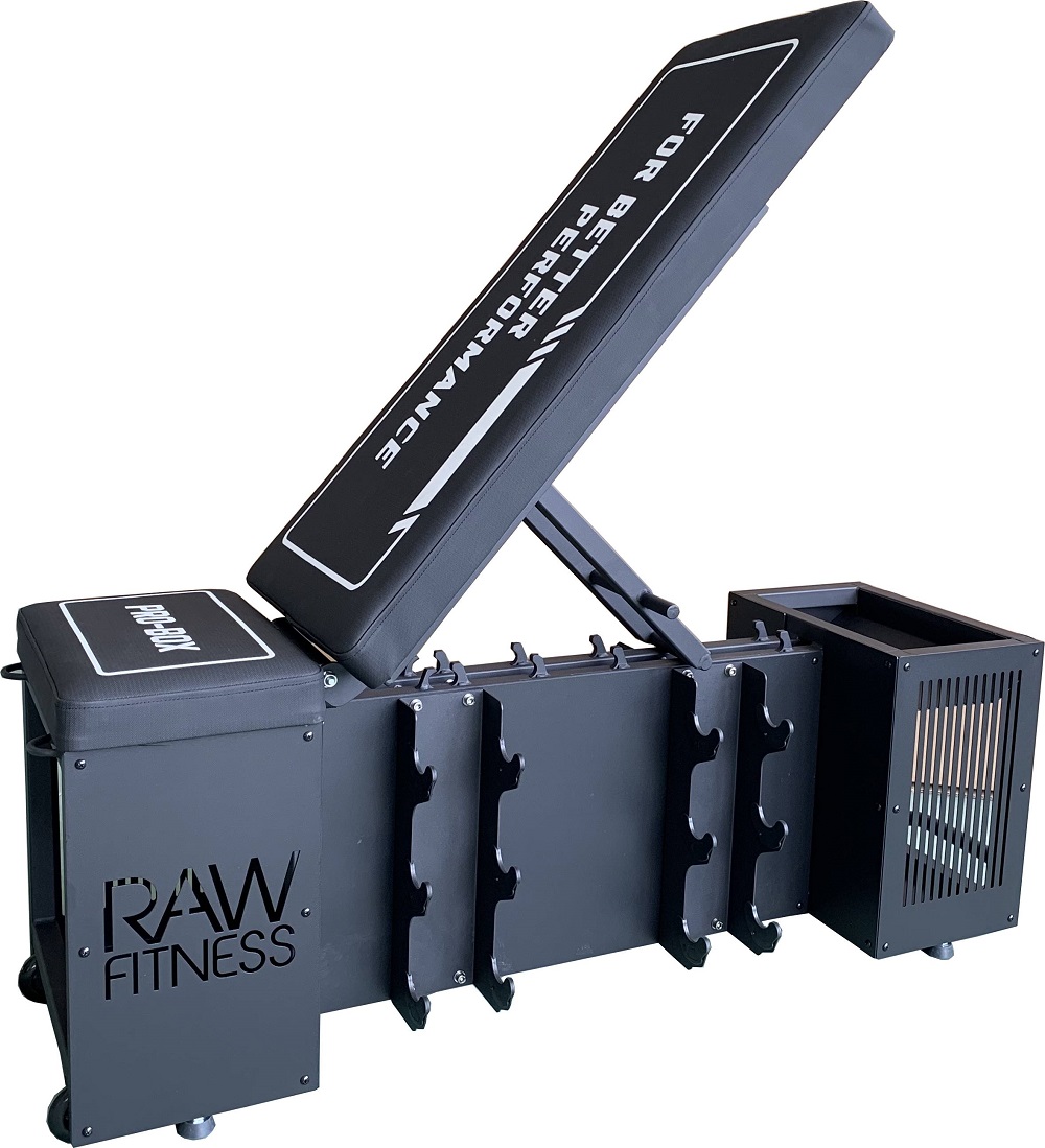 Multifunctionele trainingsbank van RawFitness het is een nieuwe generatie bench box met opbergvakken, ankerpunten voor de strijd met een touw of power band. Het kan gebruikt worden als plyo box. Kussens zijn gemaakt van zeer duurzaam materiaal en kan tegen lange termijn gebruik. Onderbescherming is aanwezig zodat het stabiel blijft en laat geen schade markeringen op de vloer. Multifunctionele Benchbox 81 kg., Heeft plaats voor 12 halters (hexa dumbbells of een andere) twee compartimenten voor slam ballen,power bands, springtouwen of andere items. 4 anker ringen (voorkant en achterkant) voor de power bands of weerstand tubes. Een handvat ring voor de strijd touw attachement. De multifunctionele benchbox heeft confortable handvaten aan de ene kant en heeft transport wielen op de andere, en kan gemakkelijk worden verplaatst van plaats tot plaats. Gebruik: - Kan gebruikt worden als vlakke of schuine bank (heeft 5 posities 90 graden tot 180 graden) trainen met dumbbells en halters. - Kan worden gebruikt als opslag voor fitness items - Kan gebruikt worden onder de squat racks - Kan gebruikt worden als een plyo box. - in de sportschool, studio ' s, sport, scholen, functionele gebieden, enzovoort.