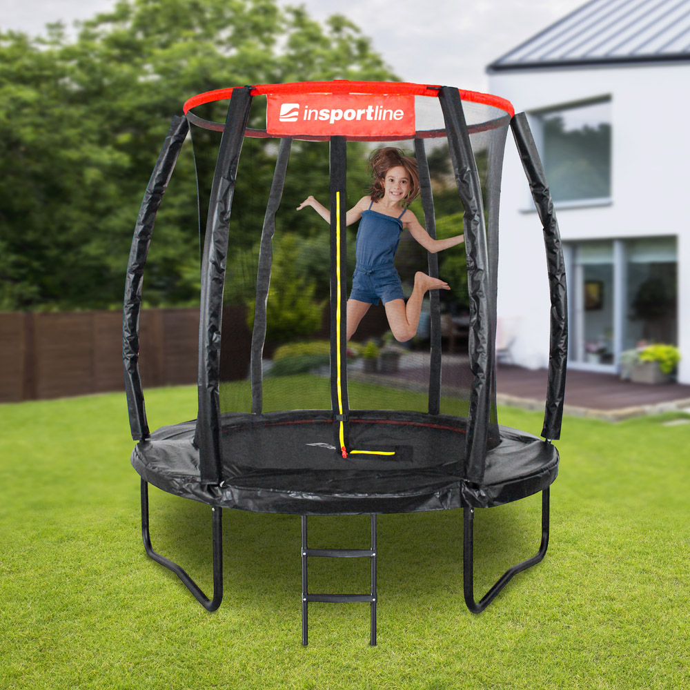 Ook de rest van de trampoline is veilig. De veren die de trampoline vasthouden zijn verborgen onder een beschermhoes, terwijl de netpalen zijn opgevuld met schuimrubberen hoezen. Met de anti-slip ladder stap je veilig op de trampoline terwijl de ingang niet alleen met een rits gesloten kan worden, maar ook met gespen is beveiligd. Deze trampoline past perfect in je tuin. Als je de rusteloze familieleden (ook de volwassen) wilt vermaken, is de Trampoline Set inSPORTline Flea de juiste keuze!